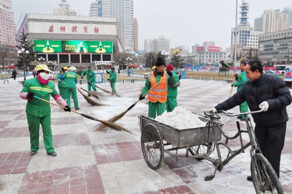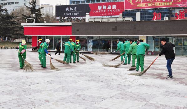 雖然雪下的不大,但氣溫驟降、風(fēng)雪交加還是給掃雪人員帶來(lái)了諸多不便,可這沒(méi)有影響各項目部團隊清理積雪的熱情,在項目經(jīng)理的帶領(lǐng)下,各班組成員對自己主管的片區進(jìn)行認真清掃,確保能夠在業(yè)主上班前讓各主干路內的行人及車(chē)輛暢通無(wú)阻,把下雪帶來(lái)的影響降至最低。