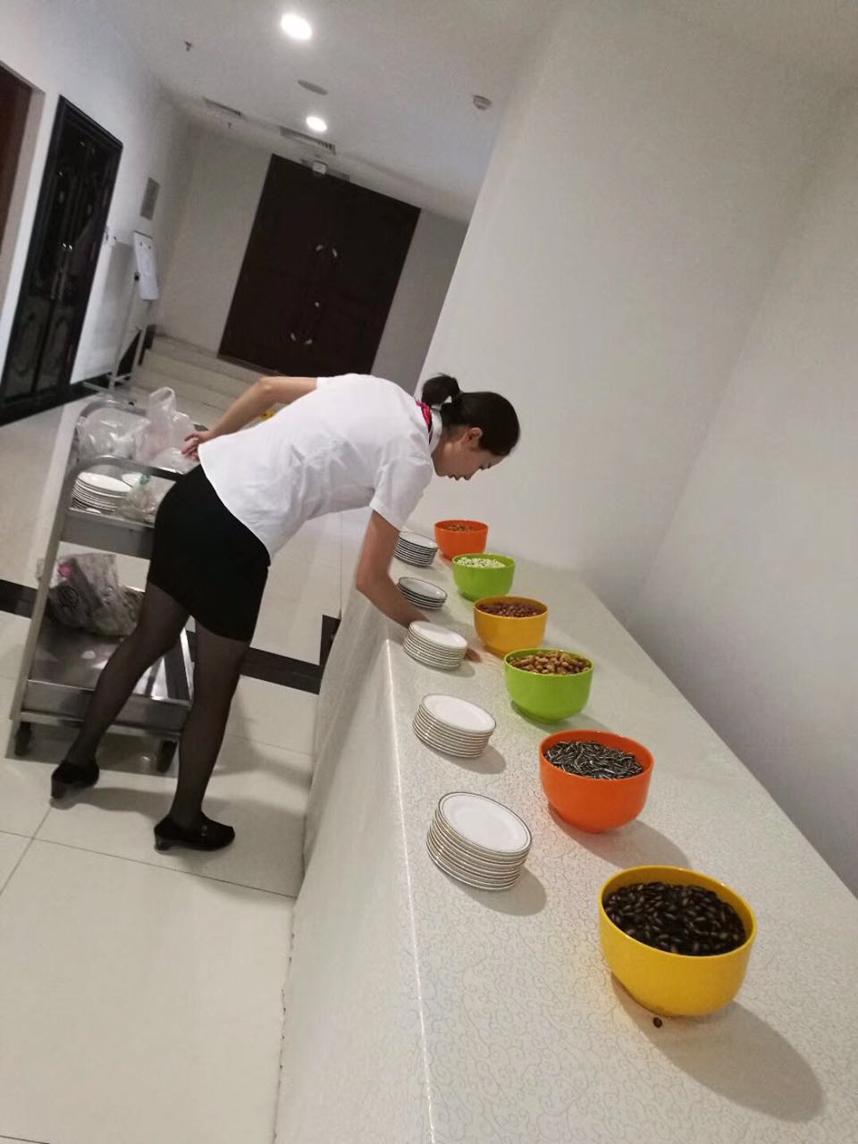 為了保障本次會(huì )議的順利召開(kāi),省高法項目部在接到通知后,全體員工放棄了周末休息,全員到崗為本次會(huì )議提前做準備。從綠化、外圍、水電、到樓內各區間衛生均認真排查,并于8月22日晚結束全部準備工作。由于本次會(huì )議規格高、要求高,省高法項目部除了要承擔會(huì )議的基本布置接待外,還需在會(huì )議休息間歇準備茶點(diǎn)。為了給外地參會(huì )領(lǐng)導留下美好的印象,省高法項目部專(zhuān)門(mén)選擇了具有蘭州特色的白粉桃、巴梨、黃河密等水果,配以蘭州特色糕點(diǎn)和干果作為茶歇區小點(diǎn),品種多樣的小食水果讓前來(lái)參會(huì )的領(lǐng)導紛紛贊不絕口。
