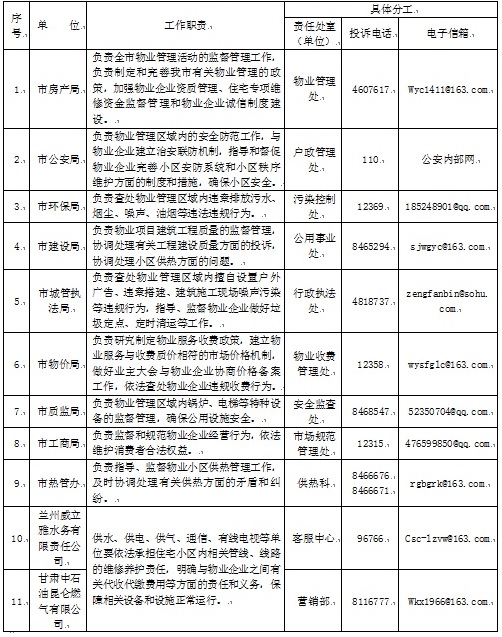 蘭州市物業(yè)管理相關(guān)責任單位及投訴電話(huà)公示