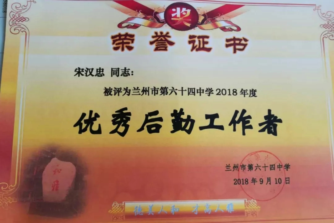 蘭州市第六十四中學(xué)召開(kāi)教師節表彰大會(huì ),城關(guān)物業(yè)員工宋漢忠等被評為“優(yōu)秀后勤工作者”。