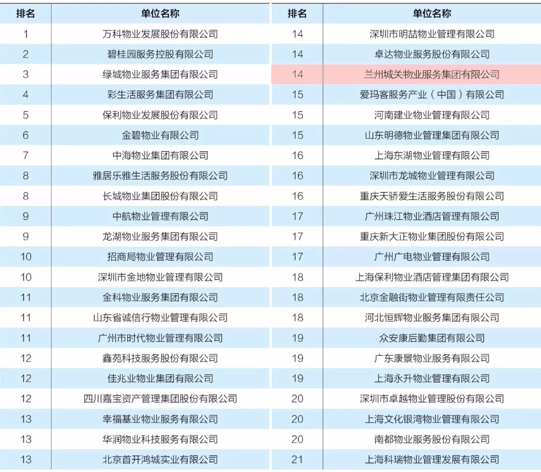 喜訊!城關(guān)物業(yè)榮膺全國物業(yè)百強企業(yè)第十四名!