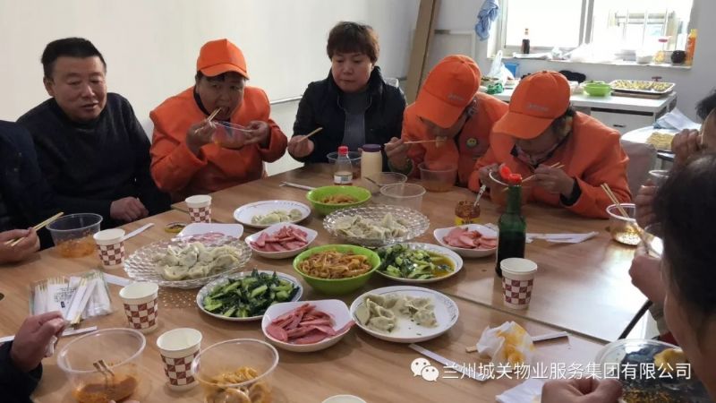 西固虛擬養老院在冬至節當天,為西固區的四十戶(hù)三無(wú)老人送上速凍水餃;廣場(chǎng)項目部為辛勤工作的員工也送上了水餃。除此之外,城關(guān)物業(yè)各項目部也組織了形式各異的活動(dòng)。新區移動(dòng)數據中心項目部配合移動(dòng)公司進(jìn)行包餃子比賽,共有六個(gè)部門(mén)參加此次活動(dòng),由廚師和甲方領(lǐng)導進(jìn)行點(diǎn)評,名列前三名的部門(mén)將給予獎勵。交大桃;▓@項目部組織員工包餃子,員工們一起聚餐,互相交流增強團隊凝聚力。