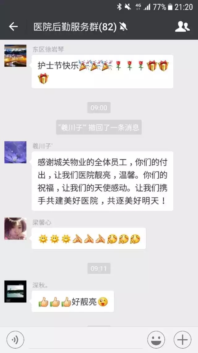 在“5·12”國際護士節來(lái)臨之際,蘭州城關(guān)物業(yè)服務(wù)集團組織舉辦了相關(guān)慰問(wèn)活動(dòng),分別向蘭大一院、蘭大二院、三愛(ài)堂醫院、陸軍總院、肺科醫院、蘭石醫院、蘭化醫院各科室護士贈送了禮品,為這些始終堅守一線(xiàn)的白衣天使送去節日的祝福,此舉獲得了院方領(lǐng)導的一致好評及贊譽(yù)。