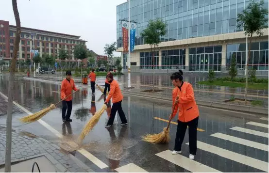 ▲全體出動(dòng)清掃路面積水