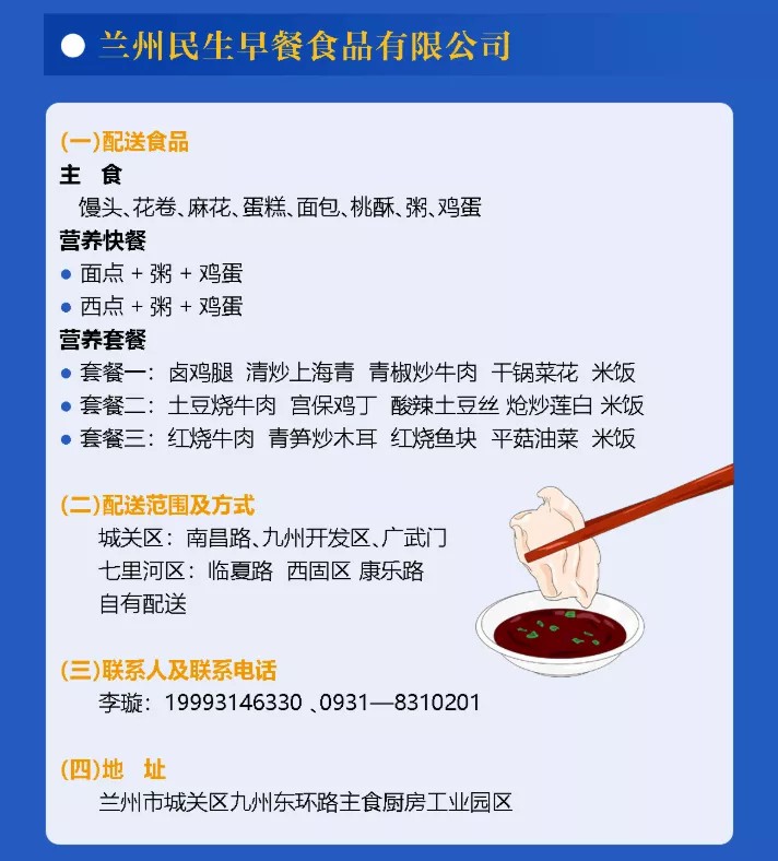 為了緩解當前蘭州地區團體就餐需求加大、居民外出就餐不便的問(wèn)題,甘肅省商務(wù)廳指導蘭州市規模較大、防控措施到位、食品安全達標的食品生產(chǎn)企業(yè)和餐飲企業(yè)開(kāi)展餐飲配送服務(wù),經(jīng)過(guò)嚴格挑選,蘭州民生早餐食品有限公司確定為疫情期間餐飲配送企業(yè)。此次,城關(guān)物業(yè)與民生早餐共同為隔離小區、防疫點(diǎn)位、團體單位及社會(huì )大眾配送餐品,全力滿(mǎn)足重點(diǎn)區域疫情期間基本生活需求。