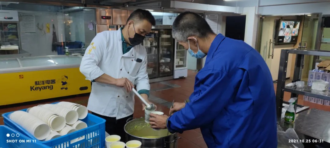 為了確保餐飲能夠及時(shí)送達各防疫點(diǎn),城關(guān)物業(yè)董事長(cháng)楊民召從早上5:30開(kāi)始就帶領(lǐng)大家在配餐間忙碌起來(lái)。他一邊配餐,一邊不停地看時(shí)間,只為確保防疫一線(xiàn)的工作人員吃上熱乎可口的飯菜。他說(shuō)到,“我們的愛(ài)心餐要一直送下去,絕對不能讓辛苦在防疫一線(xiàn)的工作人員在吃飯上有后顧之憂(yōu)。”