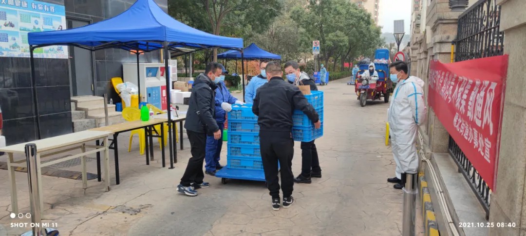 我們的愛(ài)心送餐團隊兵分兩路,對云祥小區、天慶麗舍、市疾控中心、明仁花苑、電力小區等配送愛(ài)心餐,并于早上8點(diǎn)半全部配送完畢?粗(zhù)堅守一夜的防疫工作人員終于吃上了一口熱乎飯,我們的心里也是洋溢著(zhù)暖暖的溫情。疫情當前,相信只要我們同舟共濟,就一定能共渡難關(guān)。