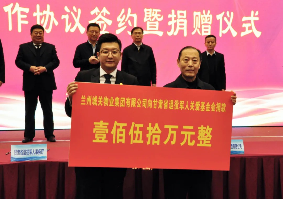 社會(huì )尊崇,愛(ài)滿(mǎn)人間。為深化雙擁共建,關(guān)愛(ài)退役軍人,甘肅省退役軍人事務(wù)廳與蘭州城關(guān)物業(yè)集團戰略合作協(xié)議簽約暨捐贈儀式在省城寧臥莊賓館舉行。
