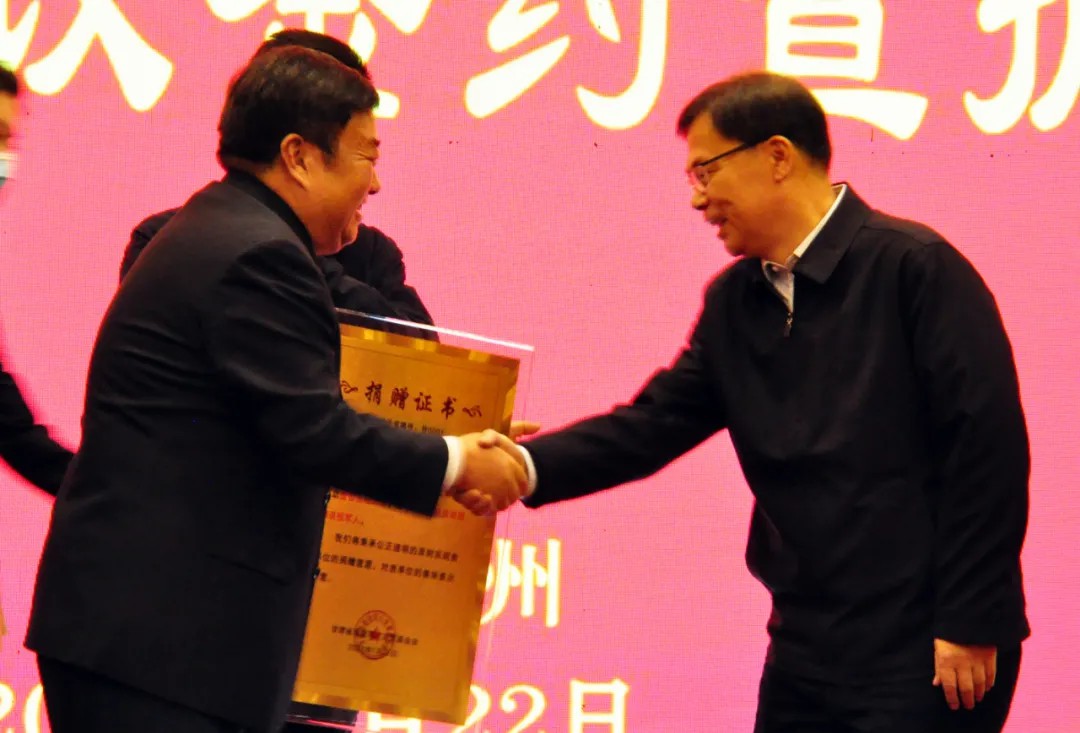 向城關(guān)物業(yè)董事長(cháng)楊民召頒發(fā)捐贈證書(shū)
