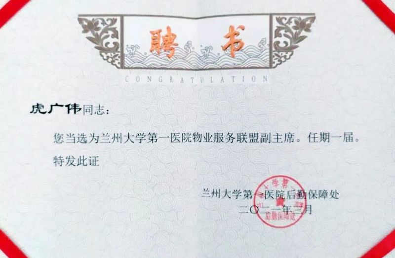 蘭州城關(guān)物業(yè)服務(wù)集團有限公司蘭大一院項目經(jīng)理虎廣偉