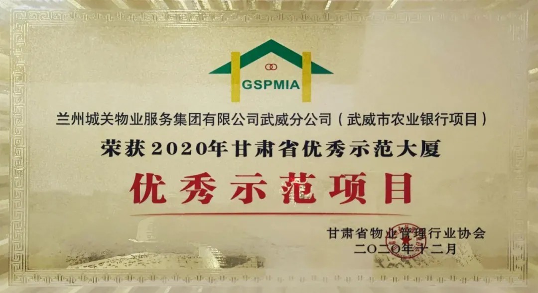 在2020年結束的第四屆甘肅省物業(yè)管理行業(yè)職業(yè)技能競賽中,五個(gè)參賽項目共產(chǎn)生了49名獲獎選手,經(jīng)甘肅省總工會(huì )評定后,成為2020年甘肅省省級技術(shù)標兵。城關(guān)物業(yè)王建朝、康杰、虎廣偉、段新剛、劉海生、劉明亮、劉阿博、胥彥剛榮獲“甘肅省技術(shù)標兵”稱(chēng)號。