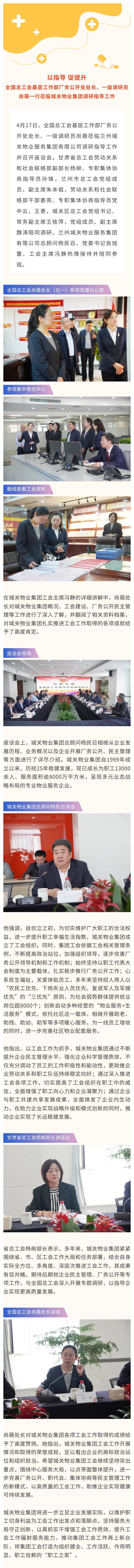 以指導 促提升|全國總工會(huì )基層工作部廠(chǎng)務(wù)公開(kāi)處處長(cháng)、一級調研員尚薇一行蒞臨城關(guān)物業(yè)集團調研指導工作