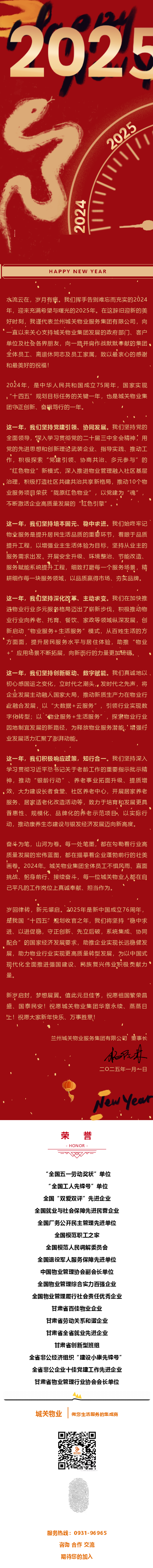 蘭州城關(guān)物業(yè)集團二〇二五年新年賀詞